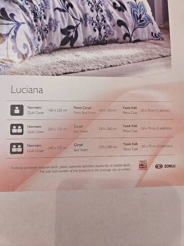 Hamisi Istambuldan getirilib.Saten Pamuk pasteller(en keyfiyyetli ve bahali materialdi).yuksek keyfitli mallardi.Hamisi 2 kiwilikdi.Pokrival Dubaydan gelib.3 rengi var.Qiymetler muxtelufdi