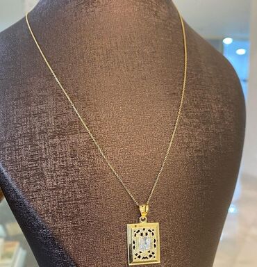 Yeni model qızıl Boyunbağı "Tiffani"brendi fabriçni möhkəm modeldi qaş yoxdu 585əyyar Türkiyə isdehsalı çəki 5.51qram. Gözəl və həcimli qızıl boyunbağıdı. Ünvan mağaza Neftçilər metrosu yaxınlığı (...