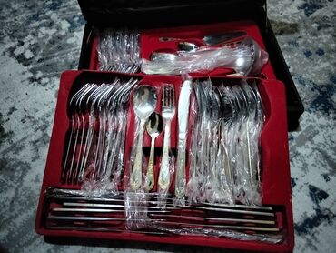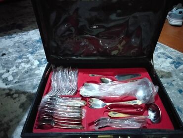 Almaniyadan alınıb.Brend mağazadan.Təmiz polad.1qutuda 1çay qaşığı q xörək qaşığı 1 çəngəl 1 bıcaq var.Arxa tərəfində zavodun möhürü var.30 avroya alınıb