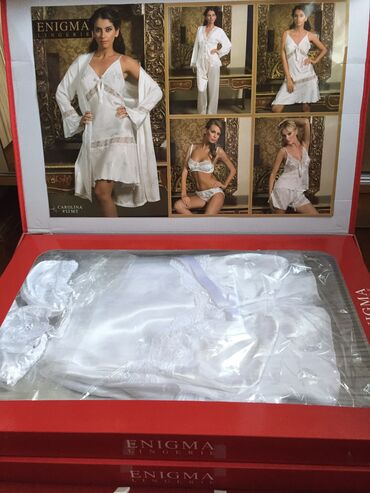 Gelin yataq paltari . Turkiyenindir . 50 man . S razmer . Getizdirmiwik geline olchusu uygun deyil. Tam S dir. 8 parcha. chox keyfiyyetli ipek ve tikiliw. 2 mertebe chemodan. endirim ola biler