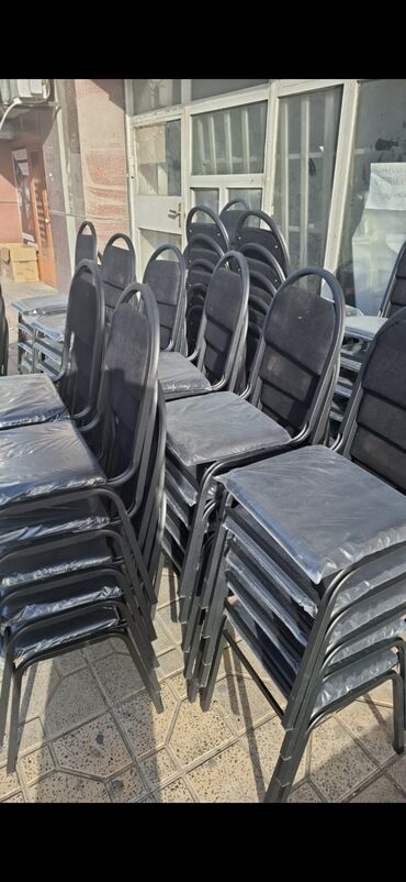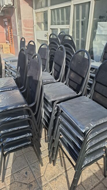 Yığılabilən metal çərçivəli stullar - Material: möhkəm metal karkas, plastik oturacaq və bel hissəsi - Rəng: tünd boz/qartal rəngi (mat örtük) - Konstruksiya: üst-üstə yığıla bilən (stackable) diz...
