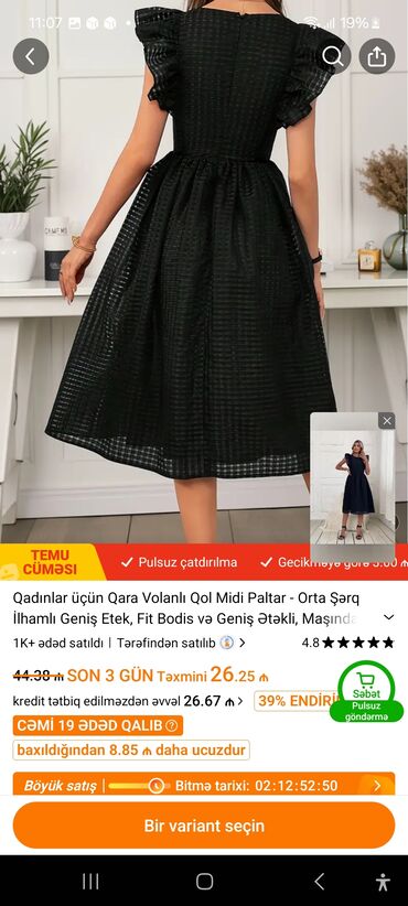 Qadin katum don atelyede tikilib sadece bir defe geyinilib diz ustudu boyu s-l bedenede uygundu kemerle tenzimlenir