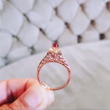 Yeni gəldi 585əyyar Rusiya istehsalı şəbəkə qızıl üzük Yaqut qaşlı Yeni model çəki 3.19qram. Ölçü 18. Gözəl görnüşdü qızıl üzükdü.