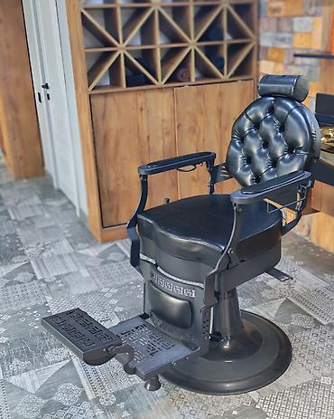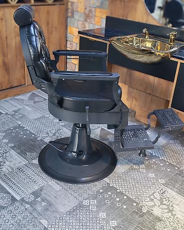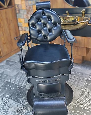 Bərbər/kosmetoloji kreslo – klassik dizayn, tam qara rəng.