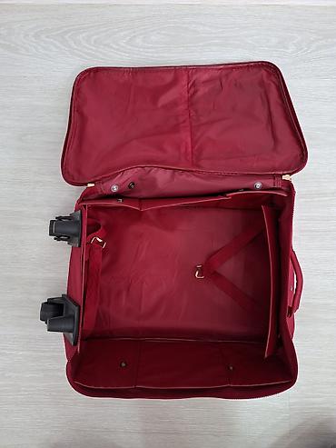 Amerikadan alınıb, istifadə olunmayıb. Həm böyük, həm də uşaq üçündür. Həm çamadan, həm də çanta kimi istifadə etmək olar. Çoxlu bölməsi var, təkərlidir, tutacağı içindən çıxır.