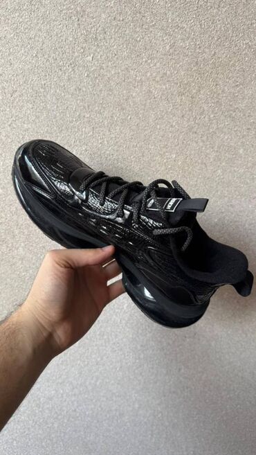 Kişi idman ayaqqabısı – zeytun-yaşıl rəng - Üst: sintetik dəri və tekstil kombinasiyası, tikişlərlə möhkəmləndirilmiş panellər - Rəng: zeytun-yaşıl, qara detallarla - Marka yazısı: yan hissədə “BO...