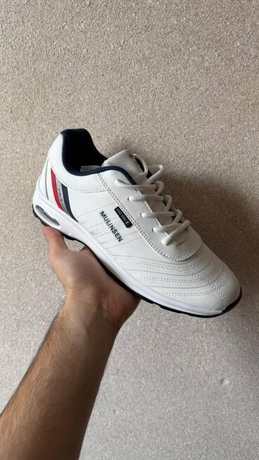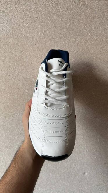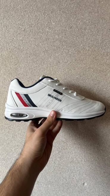 Kişi idman ayaqqabısı – zeytun-yaşıl rəng - Üst: sintetik dəri və tekstil kombinasiyası, tikişlərlə möhkəmləndirilmiş panellər - Rəng: zeytun-yaşıl, qara detallarla - Marka yazısı: yan hissədə “BO...