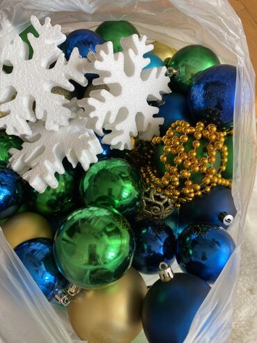 - Növlər: müxtəlif ölçülü şar tipli oyuncaqlar (mat və parlaq), dekorativ qızılı muncuq zənciri, ağ köpükdən qar dənəsi fiqurları