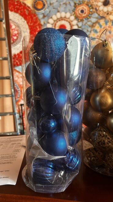 - Forması: dairəvi şar bəzəklər, müxtəlif teksturalar (parlaq, mat, qlitterli, naxışlı və açıq-haşiyəli dekorativ şarlar)