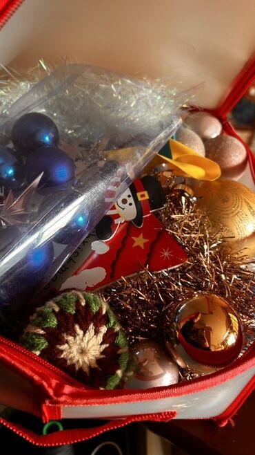 - Komplektdə əlavə dekorlar: qızılı/boz “konus” formalı bəzəklər, parıltılı yağış-mişura, müxtəlif rənglərdə lentlər
