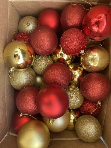 Yeni il bəzəkləri dəsti - Rəngarəng şarlar: qırmızı, qızılı, yaşıl, mavi, çəhrayı və s. Parlaq və mat fakturalı, müxtəlif ölçülər. - Naqişli, klassik dizaynlı bəzək topları və spiral formalı dekor...