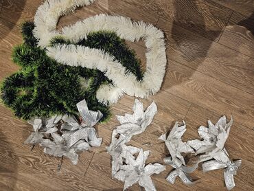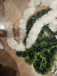 - Süni çələnglər: ağ və yaşıl rənglərin qarışığı, qalın və həcmlidir. Qapı, pəncərə, pillələr və ya şam ağacının ətrafı üçün dekorativ istifadə oluna bilər.