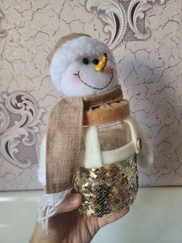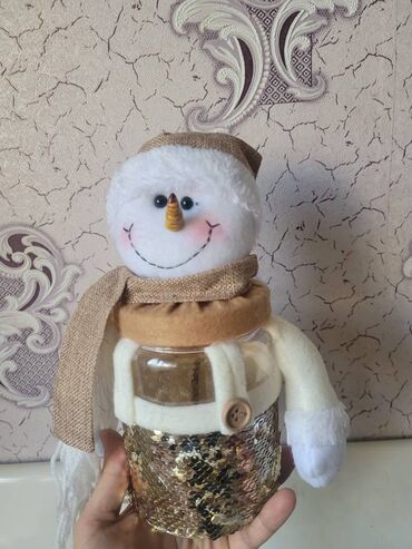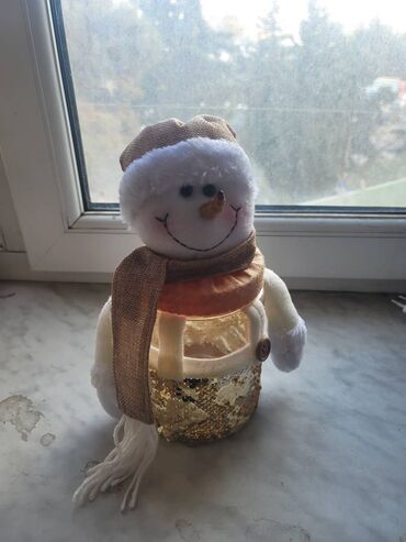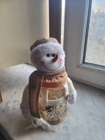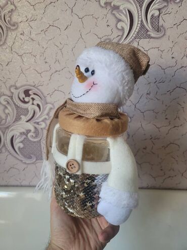 Yeni il dekoru – masaüstü kompozisiya hundurluk 40 sm - Üçbucaq konstruksiyalı dekorativ stand: çubuqlar/jut ipdən quruluş, üst hissədə “Merry Christmas” yazısı - Dairəvi taxta əsas üzərində “qar”...