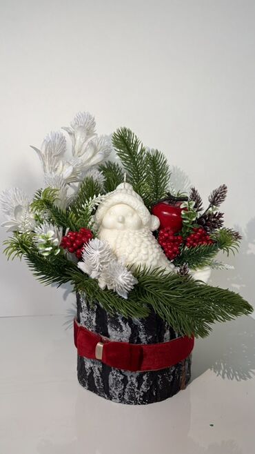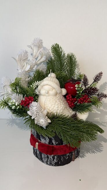- Tərkib: dekorativ süni yaşıllıq və elementlər + yandırıla bilən fiqurlu şam
