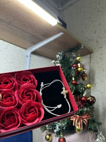 - Ayrı qırmızı qutu: 5 ədəd dekorativ qızılgül və kəpənək fiqurlu zərif qolbaq (tənzimlənən)