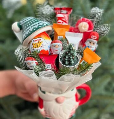 - Dekor: şən papaqlı Şaxta baba fiquru, saman dolğu, bayram bəzəkləri