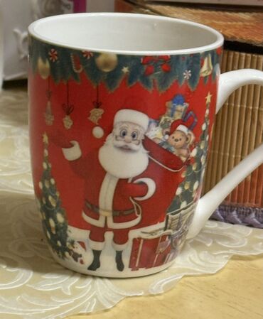 Məhsul: Yeni il temalı keramika fincanlar - Material: qalın keramika, parlaq şirli səth - Həcmi təxmini: təxminən 300–350 ml (çay, qəhvə, kakao üçün ideal) - Dizaynlar: çam ağacı, hədiyyə, konfet,...