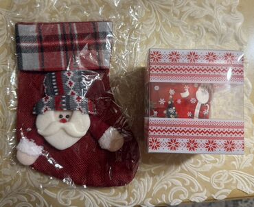 - Dizayn: qırmızı fon üzərində Şaxta baba, oyuncaqlar və yolka təsvirləri; qardanək və ulduz detalları