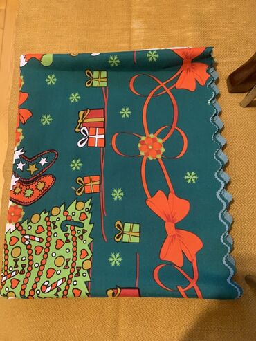 Yeni il,qirmizi sufre – 150 x 220 sm-Новогодняя скатерть,красного цвета. - Rəng: parlaq qırmızı - Ölçü: 150 x 220 sm (düzbucaqlı) - Kənarlar: dekorativ dalğalı kəsim - Stil: bayram/Yeni il tematik...