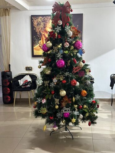 Bayram ab-havasını dərhal yaradan, zəngin dekorlu tam dəst şam ağacı.