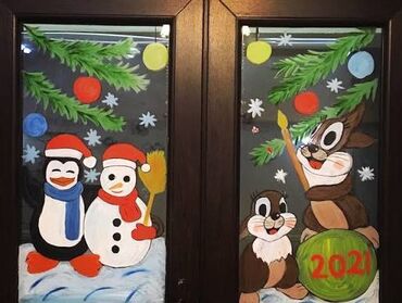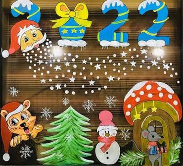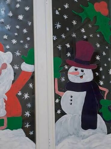 - Texnika və material: şüşə üçün təhlükəsiz akril/marker boyalar, parlaq və kontrast rənglər; içəridən və ya çöldən çəkilə bilər; hamar örtük, ulduz və qar effektləri.