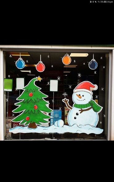 Şüşə səthləriniz bayram əhvalını dərhal ötürən, fotoqraflıq və müştəri cəlb edən canlı illüstrasiyalarla bəzədilir. Fərdi ölçü və mövzu seçimi mümkündür.