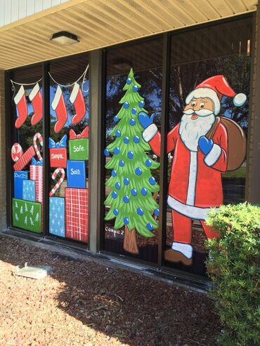 - Mağaza, ofis, kafe və ev pəncərələri üçün mövsümi əl ilə çəkilmiş rəngarəng vitrin rəsmləri