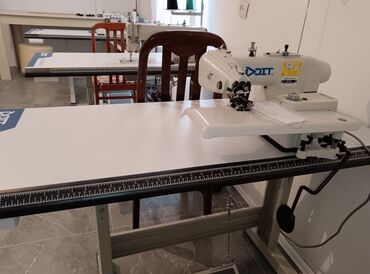 Tikiş atelyesi üçün tam avadanlıq dəsti - DIT sənaye tipli düz tikiş maşını: Sabit masa üstü quraşdırma, tənzimlənən tikiş uzunluğu, alt iplik bobin sistemi, inteqrə edilmiş işıq, kənar cərgə üçün...
