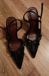 MARSEDO qadın gündəlik stiletto ayaqqabısı İstifadə: Sadəcə 1 dəfə geyinilib. Ölçü: 37 Qiymət: 60 azn alınıb, 25 azn satılır. - Model: Femme, sivri burunlu, arxası açıq (slingback) - Üst hissə: ç...