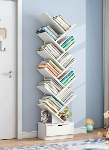 Müasir dizaynlı kitab şkafı - Material: laminat/MDFlam ağac teksturalı gövdə, ağ rəng detalları - Rəng: açıq palıd tonları + mat ağ - Ölçü (təxmini): hündürlük 180–190 sm, en 80–90 sm, dərinlik 30...