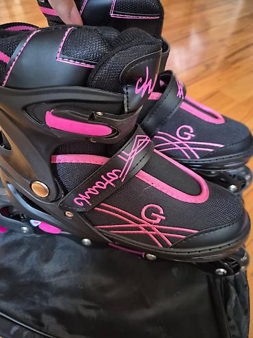Uşaq üçün rolik,M 34-38 ölçülü,hər ikisinin işıqları yanır,yenidir,az sürülüb,sıxmaq üçün açarları üstündədir.