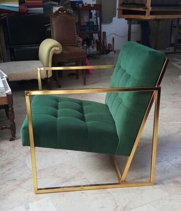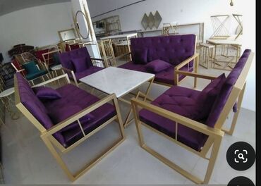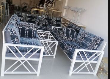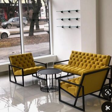 Metall karkaslı salon/terrasa mebel dəsti - Komplekt: 1 ədəd iki nəfərlik divan + 2 ədəd kreslo - Dizayn: Minimalist “loft/industrial” üslub, yan tərəflərdə X-formalı metalkarkas - Rəng: Tünd yaşı...