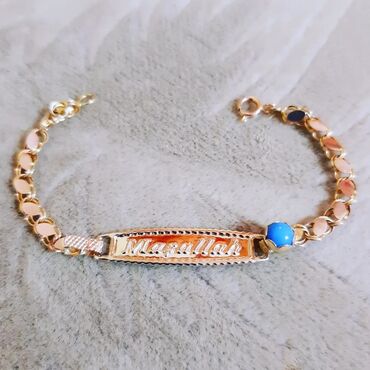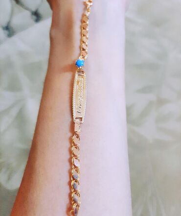 SarıYeni model qızıl uşaq qolbagı firuzə qaş fabriçni 585əyyar Türkiyə istehsalı çəki 1.91qram. Gözəl görnüşdü və həcimli qızıl bilərzikdi. Uzunluğ 14sm