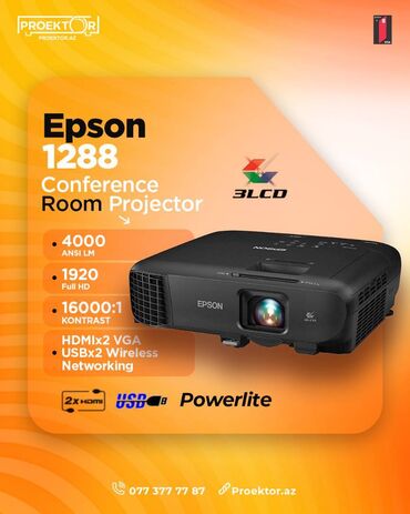 Proektor Epson Yeni, qutusunda. Say var 1 il yazılı Zəmanət verilir. cox işıqlı göstərir 17 000 saat lampa òmrù Full HD 4000 ansi lumen 16 000 : 1 kontrast 2 x HDMİ Vga 1920 full HD Lan RJ45 USB ...