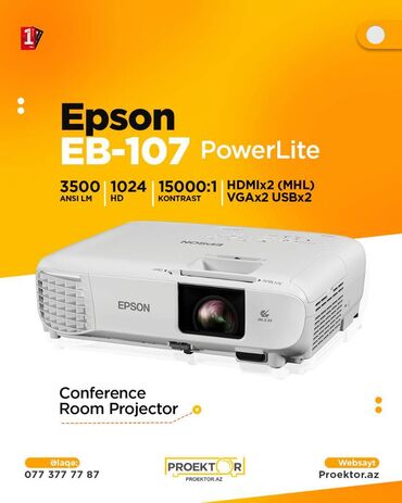 Proyektor "Epson Powerlite 107" Proektor Epson Yeni, qutusunda cox işıqlı göstərir. İşiqli otaqda da isrifadəsi mümkündür. 🎯- 1 il yazili qizil zəmanət 🎯- Birkart Vasitəsi ilə ödəniş 🎯- 2,3,6 ay ...