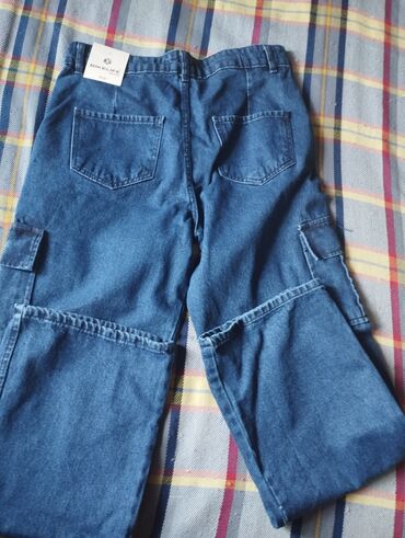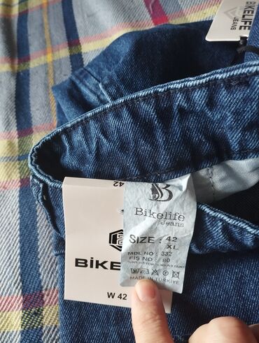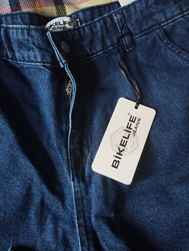 Yeni qadın şalvarları. Öndə, arxada və yanlarda M ciblər Etiketi ilə. Ölçü: 42 XL. parça: denim istehsal: Türkiyə Şalvarın uzunluğu 106