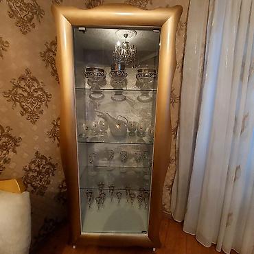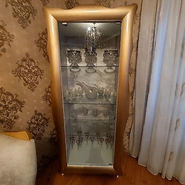 Klassik üslubda qonaq otağı mebel dəsti Tərkibi: - 4 qapılı vitrin-bufet: orta hissə şüşəli, iki mərtəbəli şüşə rəflər, yanlar yarımdairə formadadır. Yuxarı hissədə dekorativ oyma, alt hissədə qap...