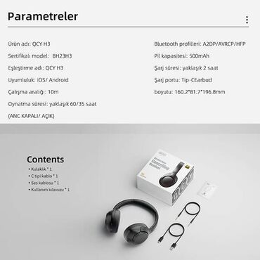 bluetooth qulaqlıq ANC qulaqlıq QCY H3 Hi-Res noise cancelling aktiv sesboğma, gaming headset canlı səs bass