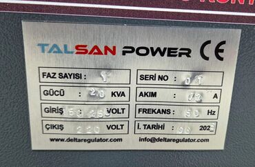 Çetinkaya gərginlik tənzimləyicisi (regulyator) Texniki göstəricilər: - Güc: 50 kVA - Giriş (Input): 150–250 V, 50 Hz - Çıxış (Output): 220 V, 50 Hz - Cərəyan: 180 A - Faz sayı: 1 faz - Model/Sərf...