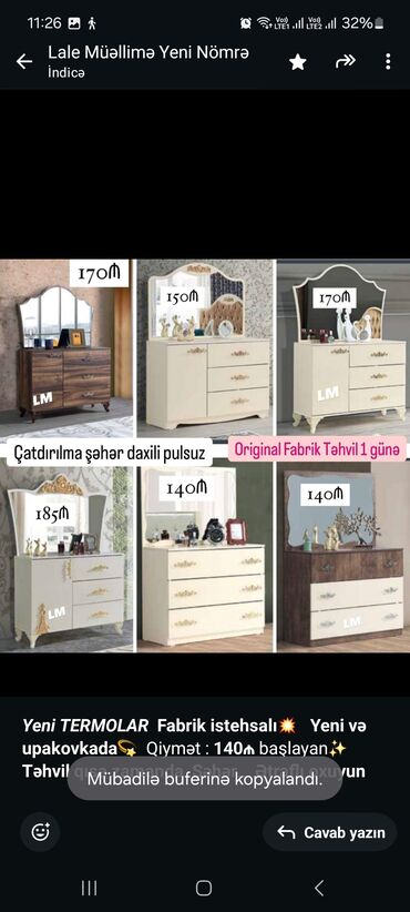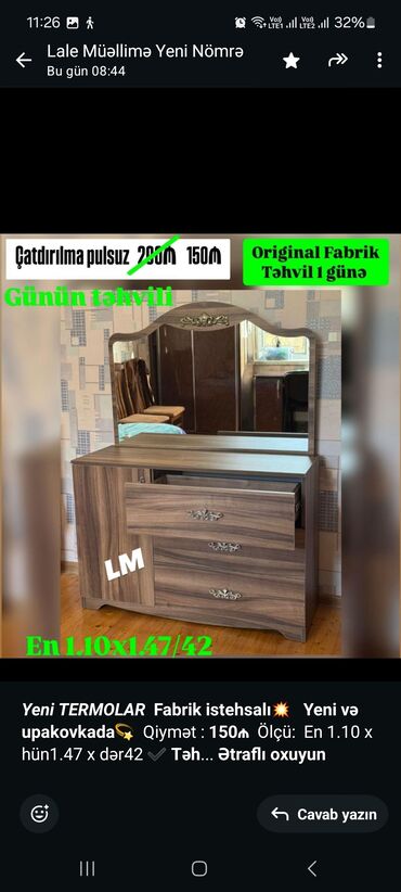 Turkiye istehsali Qonaq desti 1550 azn. 1 ildi alinib 3mine. Kocle bagli satilir. Hecbir deffekti yoxdu ideal veziyyetdedir. Unvan Xetai ray.(Zulfiyye)