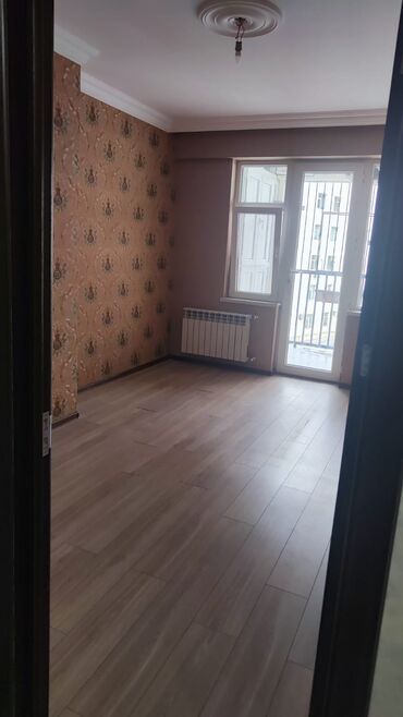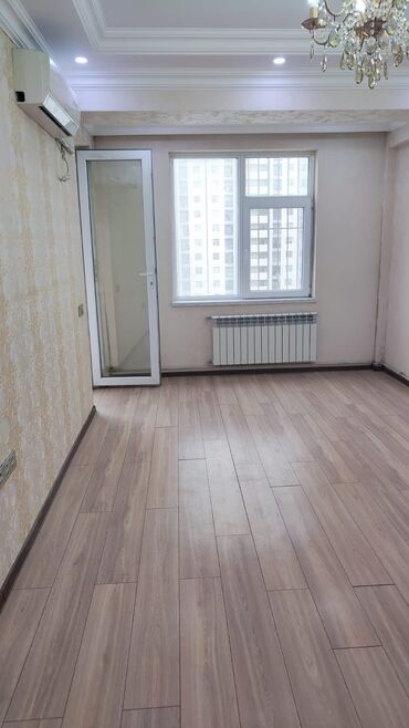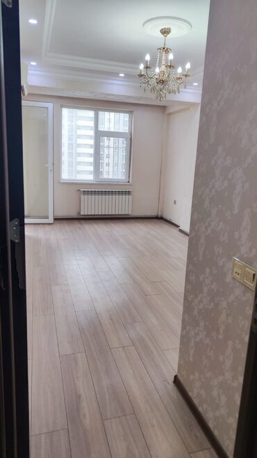 - Geniş qonaq otağı: tavan rozetkası və klassik çilçıraq, spot işıqlar, böyük pəncərə; laminat döşəmə, radiatorlu mərkəzi istilik. Pəncərədən həyətə və çoxmərtəbəli binalara açıq mənzərə. Balkon çıxışı var.