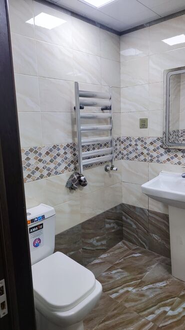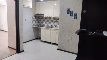 - Mətbəx: ağ rəngli asma dolablar, alt dolablar, qaz plitəsi və aspirator; dekorativ kafel arakəsmə.