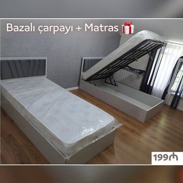 Tək neferlik çarpayılar Yeni ve Sifarişlə Bazasız: 150₼ ... Bazalı: 199₼ Ölçü : 90smx2m Rəng seçimi mümkündür. Material : 18'lik Çatdırılma və quraşdırılma şəhər daxili pulsuz‼️Giriş•Qeydiyyat