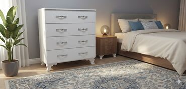 Ağ rəngli yataq otağı üçün tumbə - Ölçülər: D 40 × H 50 × U 40 sm - İki ədəd çekmece, dekorativ metal dəstəklərlə - Konus formalı ayaqlar, stabil quruluş - Minimalist dizayn, müxtəlif interyerlərl...
