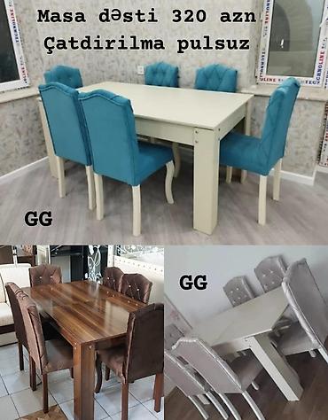 Masa dəsti MASA +6 STULL💥 Masa açılan : 80x1.30/1.70+6stul: 299₼ Təhvil: 5/6 günə ✔️ Çatdırılma şəhər daxili pulsuz🎁 Qeyd: rayonlara ödənişli çatdırılma mövcuddur🆘
