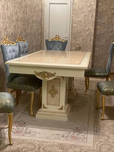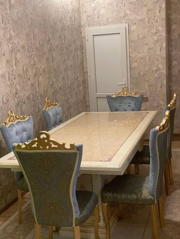 Masa dəsti və 6 stul yaxşı vəziyyətde stulda qırıq yoxdu açılandı