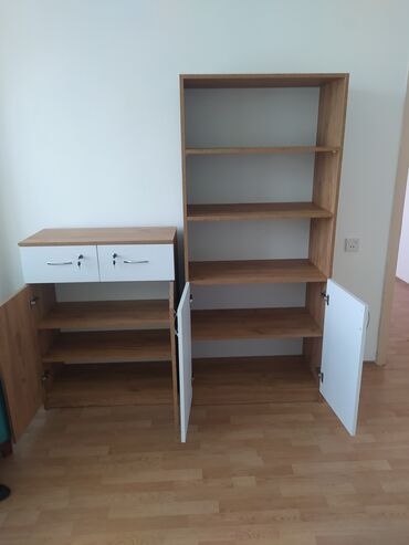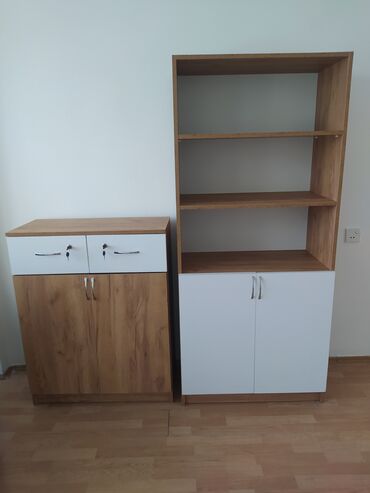 Direktor kabinet mebel dəsti - Tərkib: geniş iş masası, ön köməkçi masa, yüksək arxa dayaqlı menecer kreslosu, divarlı fon/panel (raftarla), yan tumbalı dolab, iki ədəd dərin yaşıl rəngli Chesterf...