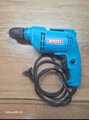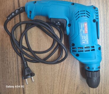 Şəbəkə ilə işləyən elektrikli qazma (şnurla). - Korpus: mavi rəngli, kompakt, tək sürətli tetik düyməsi - Güc mənbəyi: 220V şəbəkə, uzun elektrik kabeli ilə - Patron: açarlı metal patron, 1–13 mm...