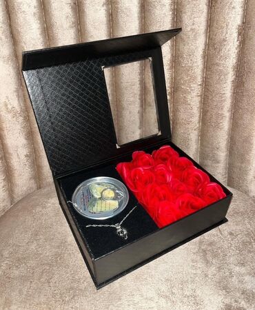 Hədiyyə qutusu seti – gül kompozisiyası və aksesuarla - Premium dəri
