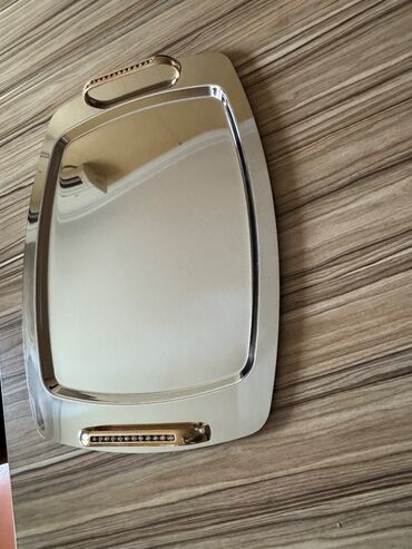 Sini ( podnos) 1 əd. Təzədir, istifadə edilmədiyi üçün birinin üzərinə ləkə düşüb. 2 ci fotoda işarələnib.